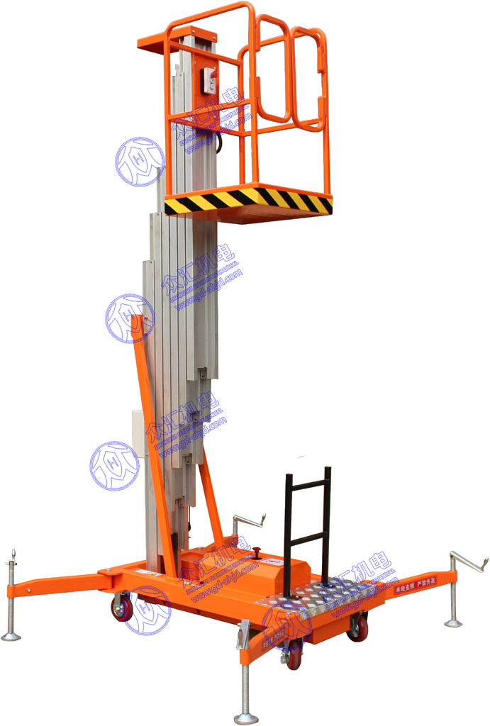 鋁合金移動(dòng)升降平臺(tái)采用高強(qiáng)度優(yōu)質(zhì)鋁合金材料,具有造型美觀、體積小、重量輕、升降平穩(wěn)、安全可靠等優(yōu)點(diǎn)。廣泛用于工廠、賓館、餐廳、車站、影劇院、展覽館等場(chǎng)所,是保養(yǎng)機(jī)具、油漆裝修、調(diào)換燈具、電器、清潔保養(yǎng)等用途的最佳安全伴侶。