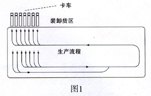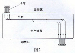 合并式平臺常用于物流量不大的小型廠房,但因這種平臺需同時完成兩種功能,所以不可避免地增加了搬運工具 / 車輛在長房內(nèi)行駛的距離。(圖1)