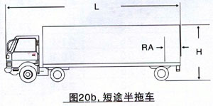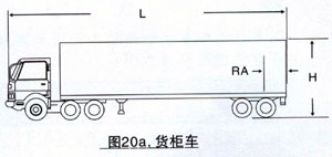 (圖20)是常見貨柜車的樣式及相關(guān)尺寸位置,要注意的是,貨車底板高度在裝卸貨過程中會有高達(dá)15厘米的變化。氣懸臂系統(tǒng)同樣會影響這些尺寸。(圖20)作為初始設(shè)計的參考,最終設(shè)計應(yīng)以量度及調(diào)查實際貨車尺寸為準(zhǔn)。