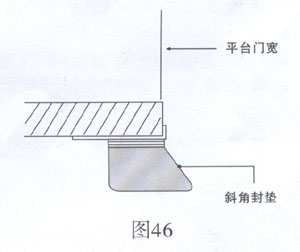 門封的封墊內(nèi)間距寬度設(shè)計成2.2- 2.3米寬度為好,門封可適應(yīng)大多數(shù)的貨車(圖45)。平臺門寬于2.3米時,需使用斜角封墊(圖46)。