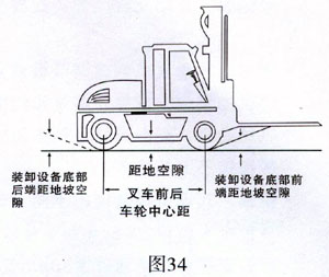 裝卸設(shè)備為在調(diào)節(jié)板上靈活安全地行駛,必須有足夠的距地空隙(Ground Clearance),如圖34和35。